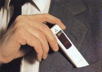 Jedes Stabdosimeter enthält eine Ionisationskammer; die Betriebsspannung liefert ein Kondensator, der vor der Messperiode aufgeladen wird. Bei vorhandener Gamma- oder Röntgenstrahlung fließt in der Ionisationskammer ein Strom, der den Kondensator allmählich entlädt. Der Spannungsrückgang am Kondensator ist ein Maß für die aufgenommene Dosis. Sie wird mit einem Fadenelektrometer auf eine Skala projiziert, die durch das Okular abgelesen werden kann. Alle Komponenten sind in einer luftdicht verschlossenen Metallhülse untergebracht. An der Aussenseite der Hülse ist ein Klipp arretiert, mit dem das Stabdosimeter wie ein Schreibgerät an der Kleidung befestigt werden kann. |