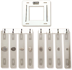 8 Plexiglasscheiben mit Bleiformen 2 mm Pb verschiedener Größen.