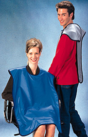 Für Erwachsene, und für Kinder Material SupraLight Bleigleichwert 0,50 mm Pb Länge 70 cm Kinder, 90 cm Erwachsene Breite 45 cm Kinder, 60 cm Erwachsene Verschluss Standard: Kettchenverschluss Auf Wunsch Klettenverschluss Außenhülle / Farben Standard: PVC Auf Wunsch: SupraTex Royalblau; weitere Farben  |