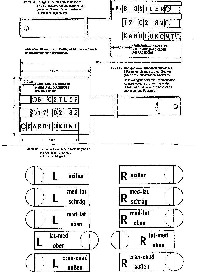 R und L, D und G mit/ohne Initialen Textschablonen Aufbelichtungs-Schablonen für die Orthopädie |